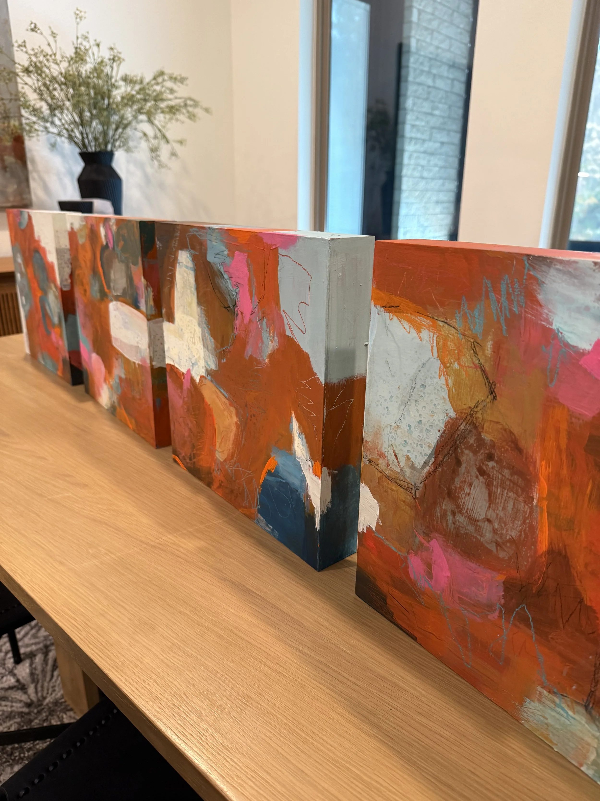Acrylic and mixed media on cradled board.