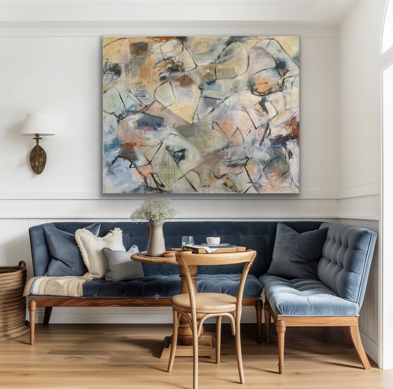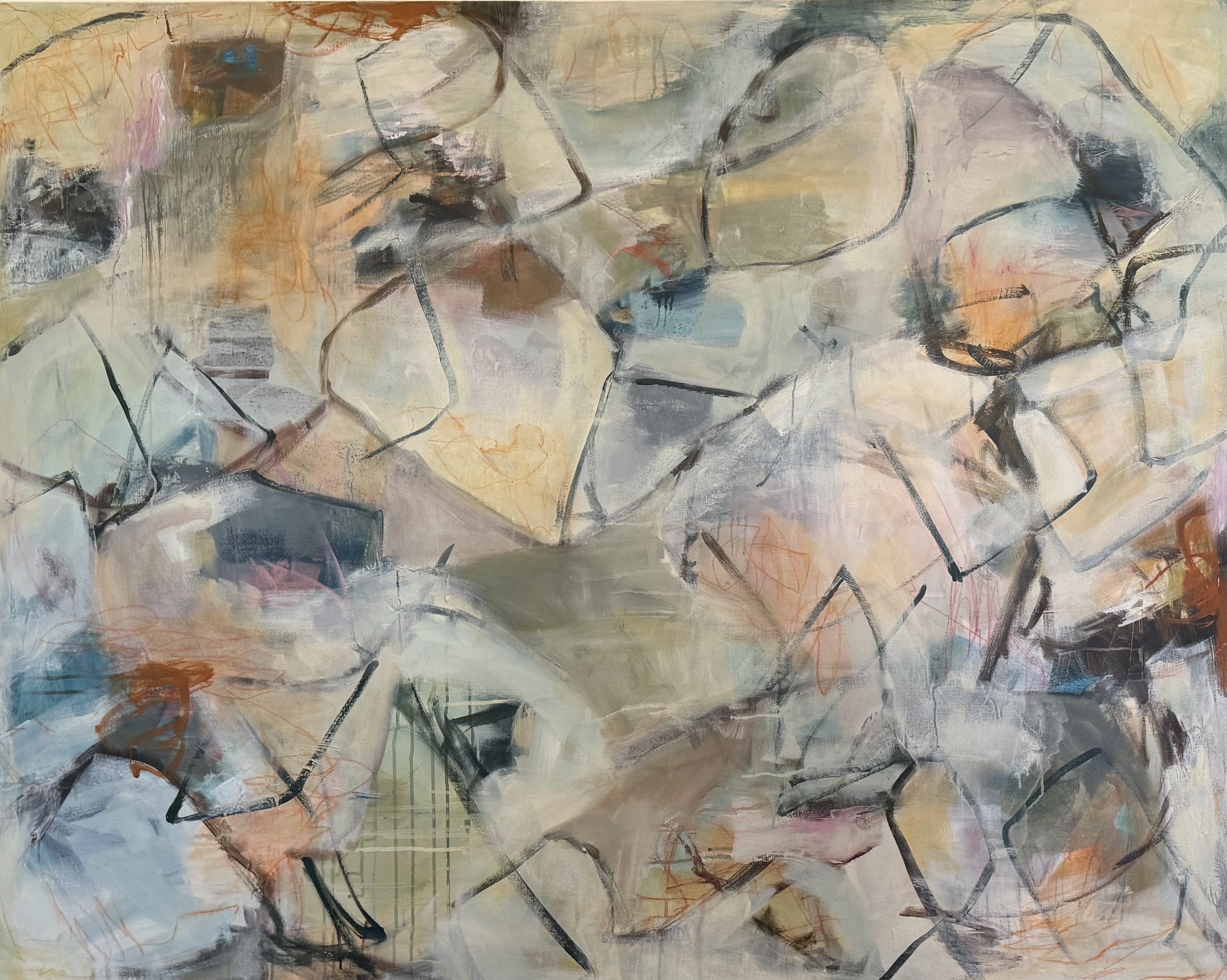 Acrylic and wax pastel on canvas.